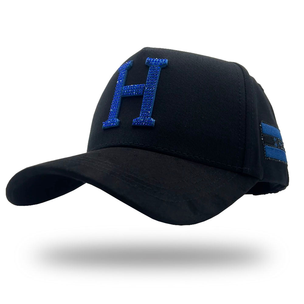 La H Blue Diamonds hat is crafted for those who lead with presence, not noise. Designed with a bold black and blue aesthetic, this piece brings together luxury materials and subtle shine for a look that speaks volumes.